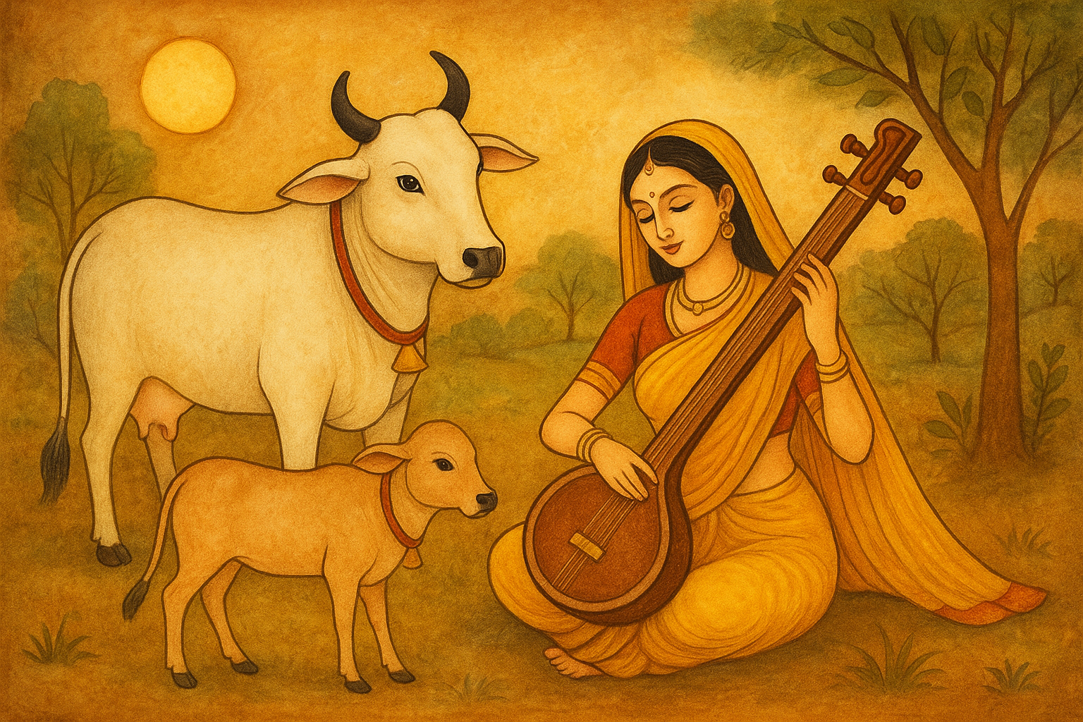 भारतीय संस्कृति में गाय का महत्व केवल कृषि, पोषण और धार्मिक दृष्टि से ही नहीं, बल्कि संगीत और कला से भी गहराई से जुड़ा हुआ है। हमारी प्राचीन परंपराओं और लोककथाओं में गाय को सुरों का सजीव स्रोत माना गया है, जिसने संगीत को आत्मा और भावनाओं से जोड़ने में महत्वपूर्ण भूमिका निभाई।